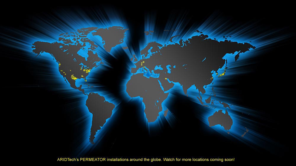 ARID Tech Products have made their way around the world.PERMEATOR systems are installed in China, Germany, Italy, Japan, Kuwait, Luxembourg, Mexico, South Korea, Switzerland, Taiwan, and United States. In the United States, many motorists began to feel uncomfortable when fuel pump prices reached $4.00 per gallon; however, in many foreign markets, the prevailing fuel pump prices are on the order of $7.00 or $8.00 per gallon. At these elevated prices, the payback period on Permeator is dramaticlly reduced, even at modest montly throughput volumes. In addition, with newly promulgated regulations throughout the European Union (EU Stage II Petrol Vapour Recovery Directive), the need to capture vapors has been formalized, and the need to contain the captured vapors will soon be recognized. |